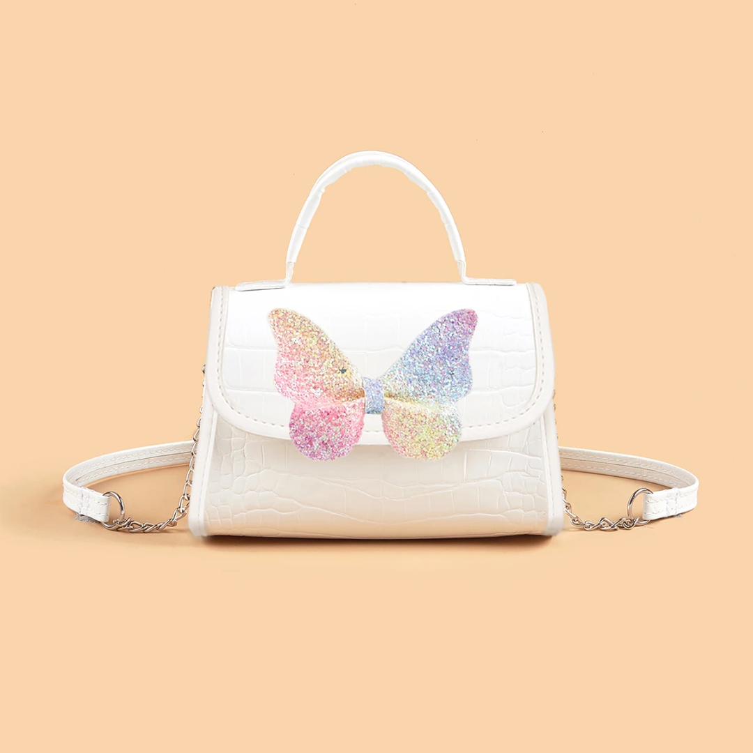 This cute white handbag with a colourfull butterfly design is perfect for little girls. It’s great for parties, playdates, or everyday dress-up. Made with quality materials and just the right size for small hands, it adds a pretty touch to any outfit.Perfect for baby shower gifts, birthdays, daily wear, and photo shoots. Great gift for new parents or grandparents.